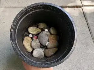 Насыпьте в каждый горшок один слой камешков (альтернативно — фрагменты глины).