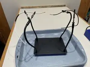 Прикрепите оголенный конец провода к зажимам вспомогательных рук, направив концы друг к другу.