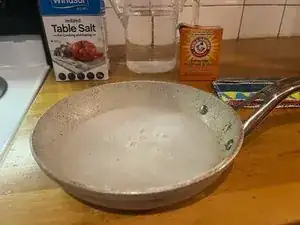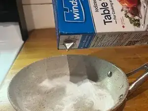 Посыпьте соль поверх соды. Соль действует как абразив и усиливает процесс очистки.