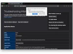Откройте Firefox, нажмите кнопку меню Открыть, перейдите в Справка и выберите Сведения для диагностики.