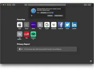 Разверните меню История и выберите Очистить историю. Нажмите кнопку Очистить историю в окне подтверждения.