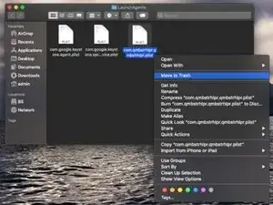 Используйте функцию Переход в папку, чтобы открыть следующие пути: /Library/LaunchAgents (без тильды), /Library/LaunchDaemons и ~/Library/Application Support. Проверьте содержимое этих папок и переместите подозрительные файлы и папки в Корзину.