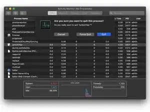 Если Вы нашли вредоносный процесс, нажмите кнопку X в правом верхнем углу окна «Мониторинг активности», затем выберите в появившемся диалоге Завершить или Принудительно завершить.