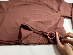 Переверните подгиб наизнанку и совместите его с срезанным краем толстовки.