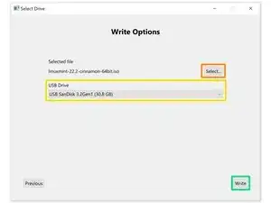 Дважды проверьте, что всё правильно, затем нажмите Write. Появится окно с подтверждением. Выберите Write, чтобы стереть выбранный диск и записать на него установщик Linux Mint.