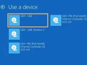 Если вы используете Windows 7, перезагрузите компьютер и многократно нажимайте F12, F2 или клавишу, специфичную для вашего устройства, чтобы войти в меню выбора загрузки. Пропустите оставшуюся часть этого шага.