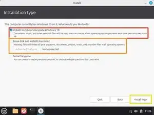 Если вы уменьшали раздел Windows в этом шаге, выберите вариант Установить Linux Mint рядом с Windows.