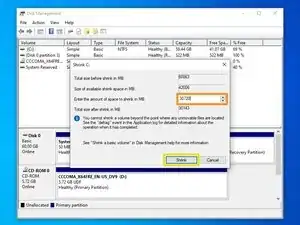 Введите, на сколько мегабайт вы хотите уменьшить существующую установку Windows. Для перевода ГБ в МБ умножьте на 1 024. Например, 30 ГБ = 30 720 МБ.