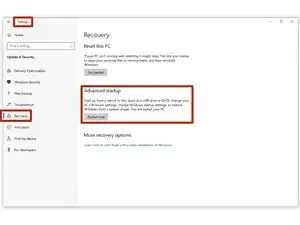 Откройте приложение «Параметры» и перейдите в Обновление и безопасность → Восстановление, затем нажмите «Перезагрузить сейчас» в разделе Особые варианты загрузки.