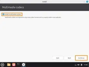 Отметьте Установить мультимедийные кодеки, затем нажмите Продолжить.