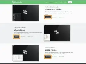 Выберите окружение рабочего стола (Cinnamon, Xfce или MATE) согласно описанию и скриншоту. Нажмите Download рядом с выбранным вариантом.
