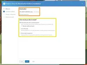 У каждого дистрибутива Linux процесс установки немного отличается, но настраиваются они схожим образом. Этот пример выполнен с помощью установщика Fedora Workstation 42 Live.