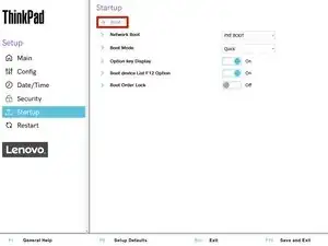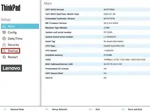 На этом шаге показано меню BIOS современного Lenovo ThinkPad. Внешний вид BIOS может немного отличаться, но порядок действий обычно схож. Используйте клавиши со стрелками для навигации и нажмите «Enter» для выбора пунктов. Некоторые элементы также можно управлять мышью.