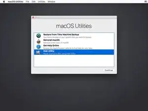 Выберите «Disk Utility» в меню и нажмите [enter] или кнопку продолжения.