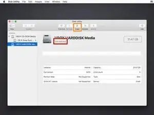 Выберите ваш жёсткий диск в левой колонке Disk Utility.
