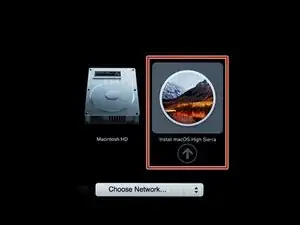 Используйте стрелки на клавиатуре или мышь, чтобы выбрать «Install MacOS High Sierra». Нажмите [enter] или щёлкните по выбранному пункту мышью.
