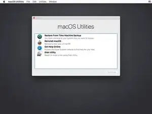 Выберите «Reinstall macOS» в меню и нажмите [enter] или «Continue».