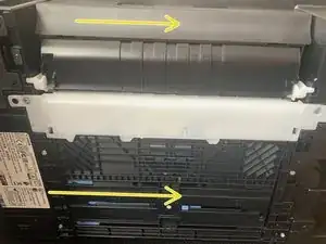 откройте передний лоток и осмотрите внутри