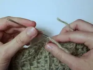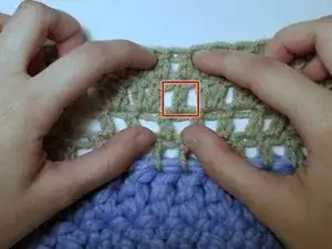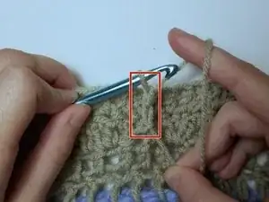 Вставьте крючок через базовую петлю (там, где должна была быть отсутствующая петля) спереди назад.