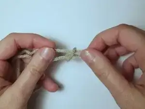 Снимите крючок и завяжите получившуюся петлю узлом. Обрежьте пряжу, оставив ещё один хвостик около 3 дюймов.