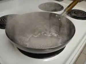 Нагрейте вок до закипания воды.