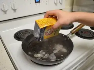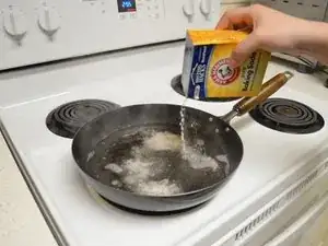 Посыпьте aproximadamente 1-2 столовые ложки соды на вок.