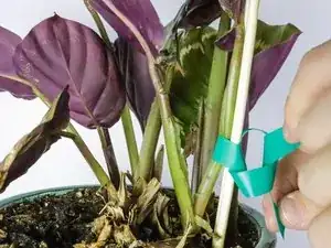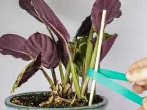 Обмерьте ленту для подвязки вокруг палочки и сломанного стебля.