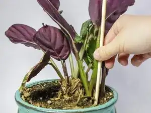 Убедитесь, что выбранная палочка сопоставима по размеру со стеблем растения.
