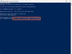 В открытой консоли (как в Шаге 1) введите dism /online /cleanup-image /restorehealth. Эта команда сравнивает файлы с онлайн-образом Microsoft для выполнения восстановления.
