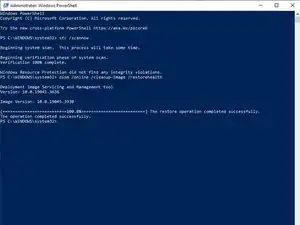 Запустите SFC, особенно если при первом запуске он сообщил, что не смог исправить все повреждения. DISM мог заменить файлы, которые ранее были повреждены.