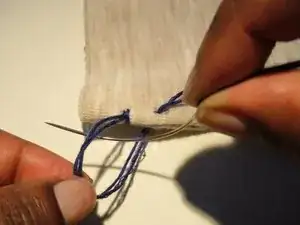 Обведите нитку вокруг ткани и протолкните иглу через самый первый стежок, образуя петлю.