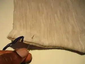 При проталкивании иглы через одеяло следите, чтобы пальцы не находились близко к игле.