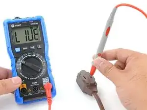 Подключите чёрный щуп к разъёму COM. Подключите красный щуп к разъёму мА (правый разъём на мультиметре iFixit).
