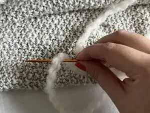 Вставьте иглу сзади пледа и тяните, пока узел не остановит вас.