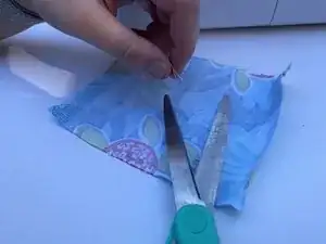 Удалите готовую одежду из-под лапки, обрезав и оставив около 10 см избыточной нити.