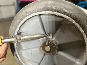 Замените старый штифт на новый и вставьте его обратно в отверстие на краю шпинделя колеса.