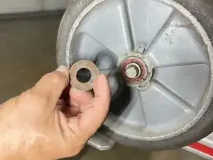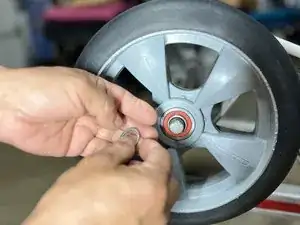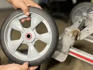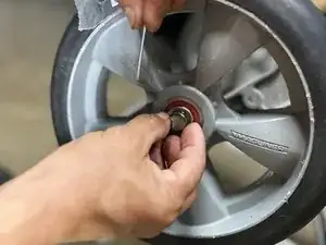 Вставьте новое колесо в шпиндель колеса.