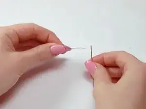 Протяните один конец отрезанной нитки через ушко иглы.