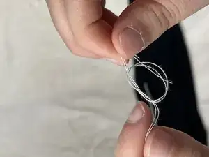 Когда вы закончите шитье разрыва, завяжите небольшой узел у основания нитки.