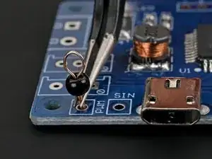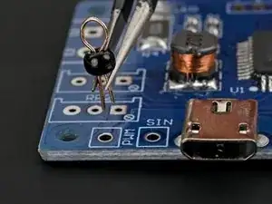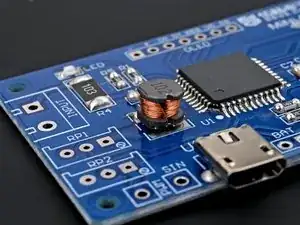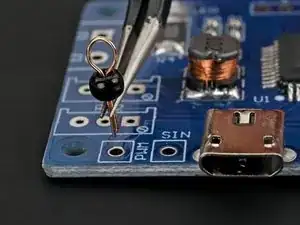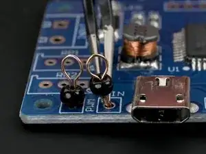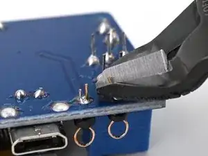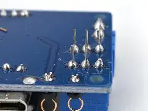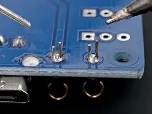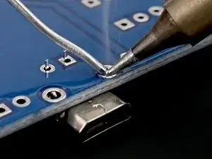 На этом шаге вы нанесёте припой на одну из площадок микроконтроллера, чтобы облегчить выравнивание при последующей пайке.
