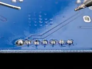 Поднесите припой к нагретой области, пока на плате не образуется небольшая капля припоя.