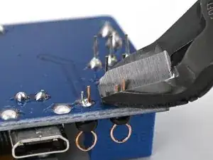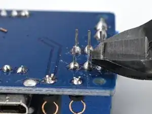 Повторите предыдущий шаг, чтобы обрезать все выводы до тех пор, пока они не перестанут выступать над своими паяными соединениями с обратной стороны платы.