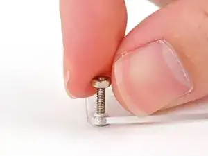 Вставьте один из винтов 11 мм в отверстие нижней акриловой панели.