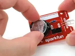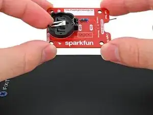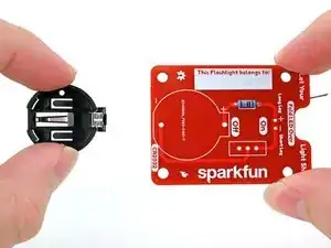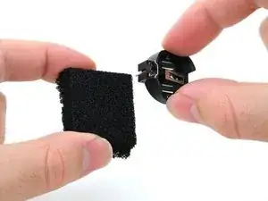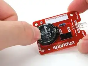 Разместите батарейку CR2032 в держателе батареи положительной (+) стороной вверх.