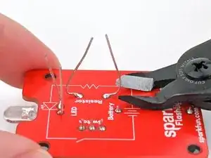 Используйте бокорезы, чтобы обрезать все выводы до тех пор, пока они не перестанут выступать над паяным соединением с обратной стороны платы.