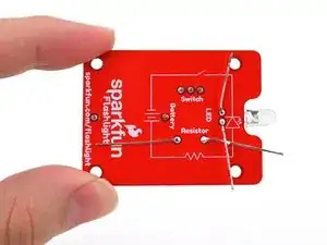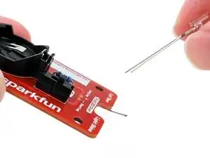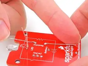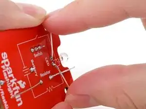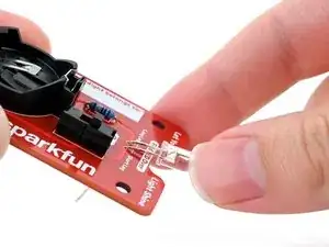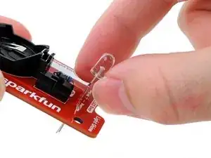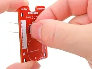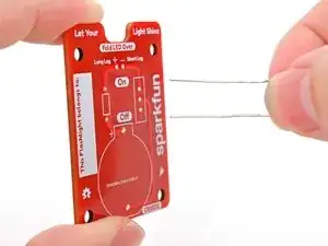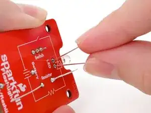 Вставьте выводы светодиода примерно наполовину в переднюю сторону платы: длинный вывод — в отверстие, помеченное «Long Leg», а короткий — в отверстие, помеченное «Short Leg».