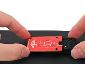 Переверните плату и положите её так, чтобы разъём батареи опирался на рабочую поверхность или коврик.