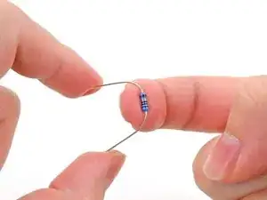 Удерживайте корпус резистора одним пальцем и загните выводы по краям этого пальца на 90° в форме U.