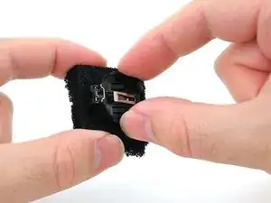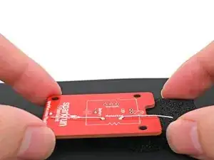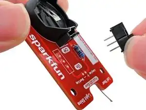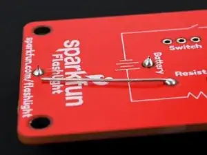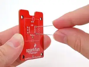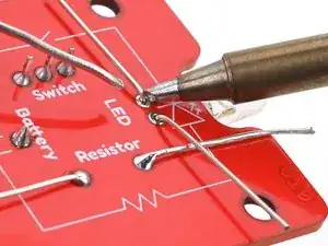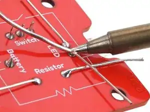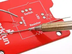 Если второй вывод больше не прилегает к плате, протолкните его обратно через отверстие, нагревая первый вывод, прежде чем паять его. При необходимости отпаять разъём батареи и начать шаг заново.