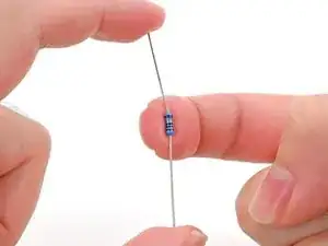 Зогните выводы резистора так, чтобы они были параллельны плате. Это удержит резистор на месте во время пайки.